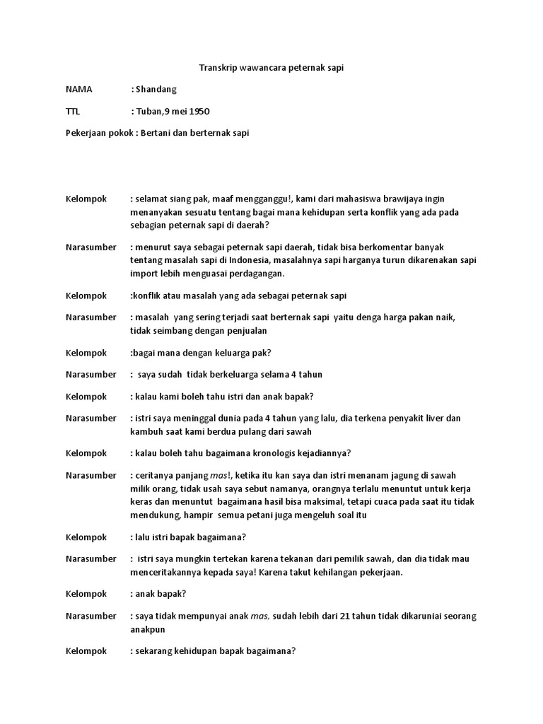 Contoh wawancara tentang peternakan sapi. 1 Analisis Penerapan Sistem Bagi Hasil Belah Sapi Dalam. Iya siang dek. I have two cattle one cow and one calf.