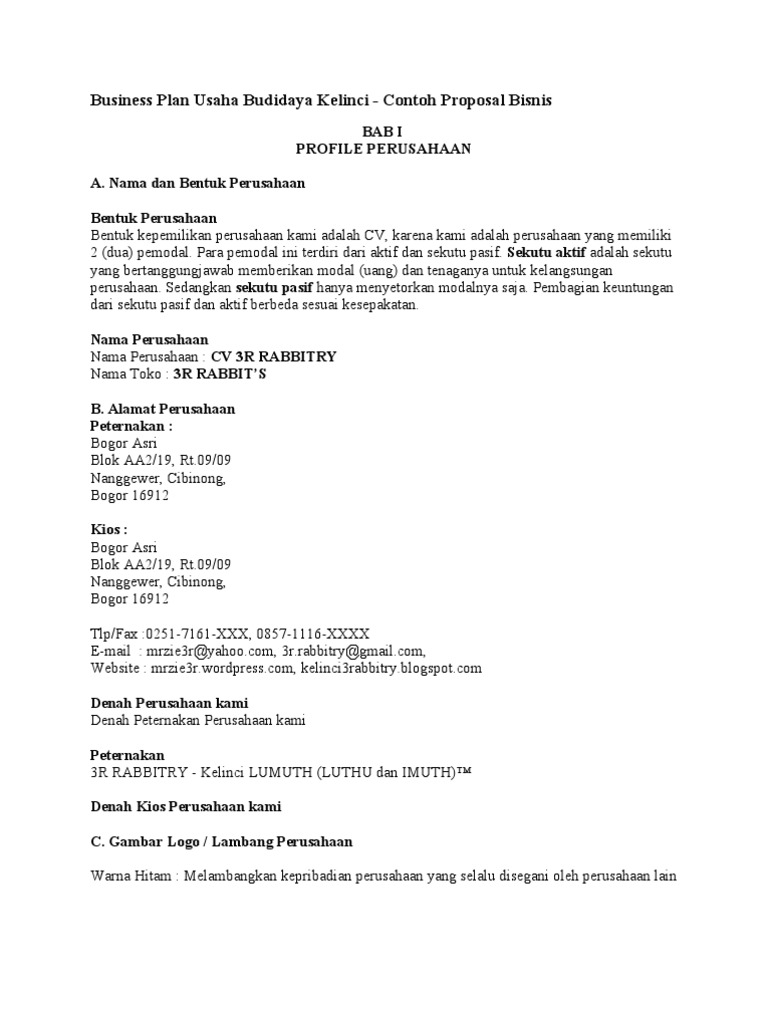 Penjelasan utuh dan detil tentang pengembangan bisnis yang direncanakan mulai dari organisasi perusahaan administrasi hingga hak dan kewajiban masing-masing anggota yang terlibat didalamnya. Masa panen reatif cepat dibanding dengan ternak hewan lain. RENCANA BISNIS 21 Deskripsi Usaha 211 Bidang Usaha Penulis akan menekuni peternakan dan penggemukan kambing.