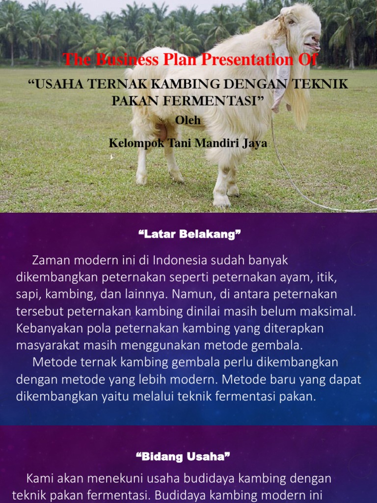 The Business Plan Presentation Of Usaha Ternak Kambing Dengan Teknik Pakan Fermentasi