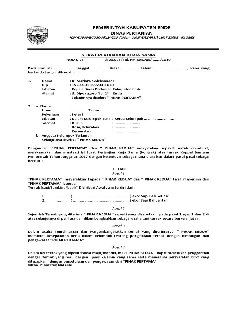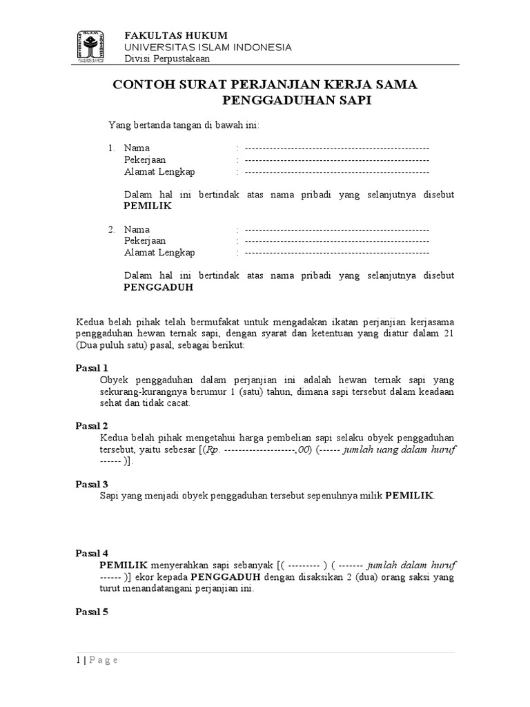 Contoh Surat Perjanjian Kerjasama Dalam Bidang Penggaduhan Sapi Fh Uii