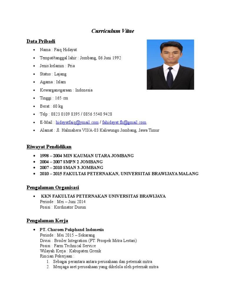 Contoh Curriculum Vitae Fresh Graduate Sarjana Peternakan