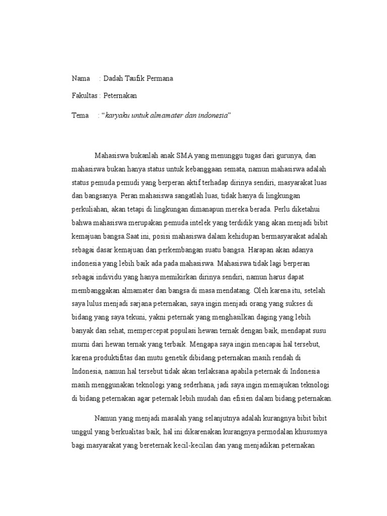 Doc Essay Mahasiswa Di Bidang Peternakan Wahyu Nursiswo Academia Edu