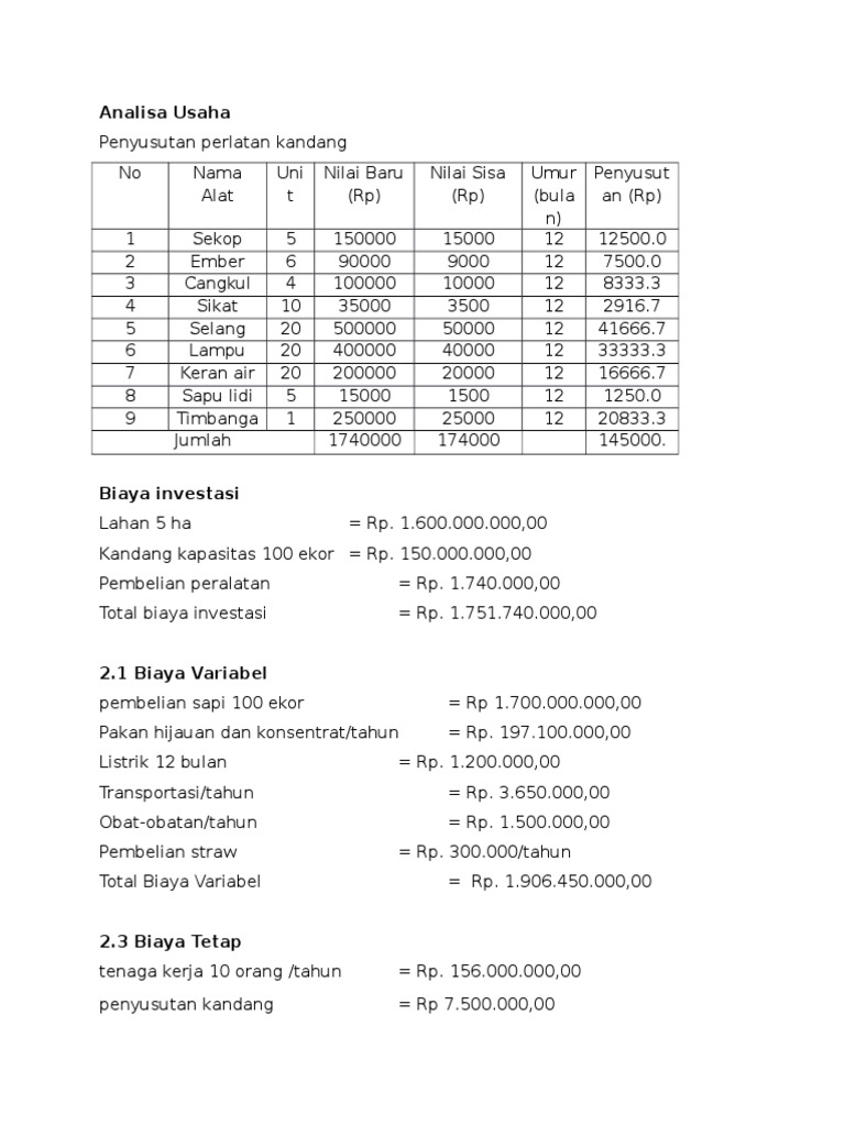Analisa Pemeliharaan Contoh Analisa Usaha Sapi Perah Dengan 5 Ekor Induk 1 Biaya Bibit 5 Ekor X Rp Rp Kandang Rp Ppt Download