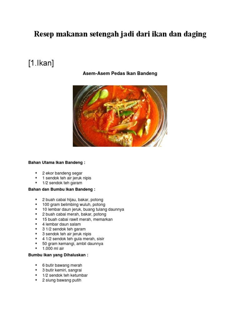 Resep Makanan Setengah Jadi Dari Ikan Dan Daging