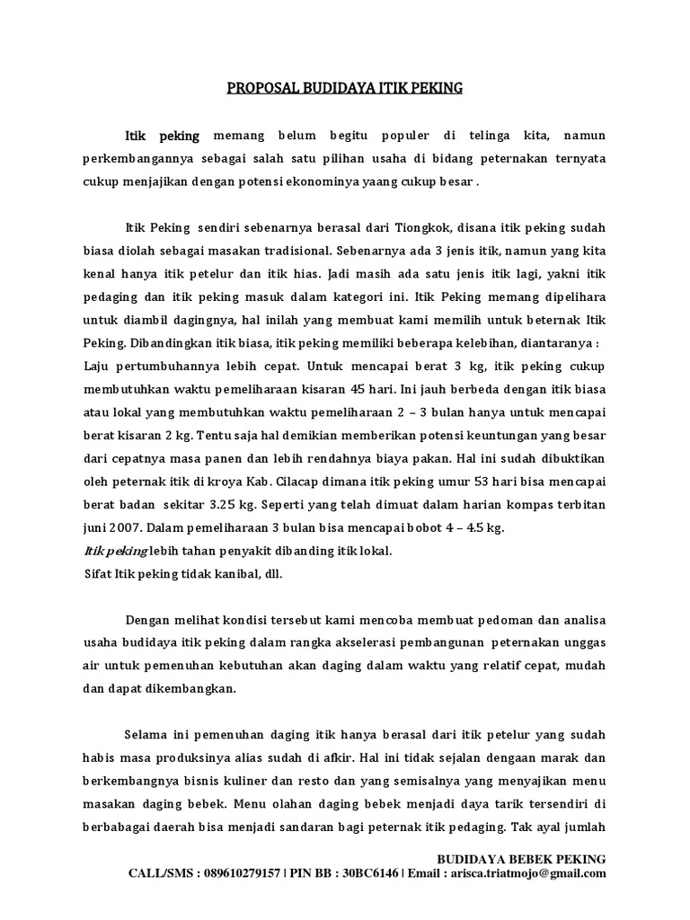Contoh proposal ternak bebek. Penetasan telur Itik secara tradisional dilakukan dengan cara ditetaskan oleh induk ayam yang mengeram. 0853-5591-1377 BANGKINANG Nomor. Dusun Bakong Dasan Desa Lembar Kecamatan Lembar.