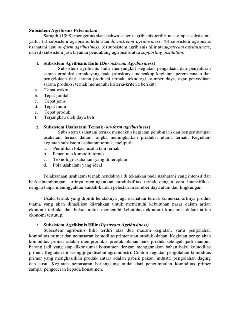 Contoh agribisnis peternakan. Sistem merupakan seperangkat unsur yang secara teratur saling berkaitan sehingga membentulk suatu totalitas. Di dalam tubuh ternak terdapat organ-organ tubuh antara lain hati jantung paru-paru otak dan usus. Secara umum sistem produksi peternakan Sapi Potong di wilayah Nusa Tenggara Timur merupakan peternakan tradisional berbasis lahan pengembalaan dengan jumlah kepemilikan ternak sedikit.