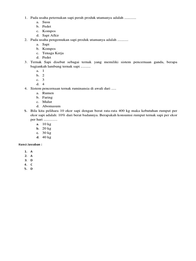 Contoh Soal Dan Jawaban Tentang Peternakan Soal Dan Jawaban