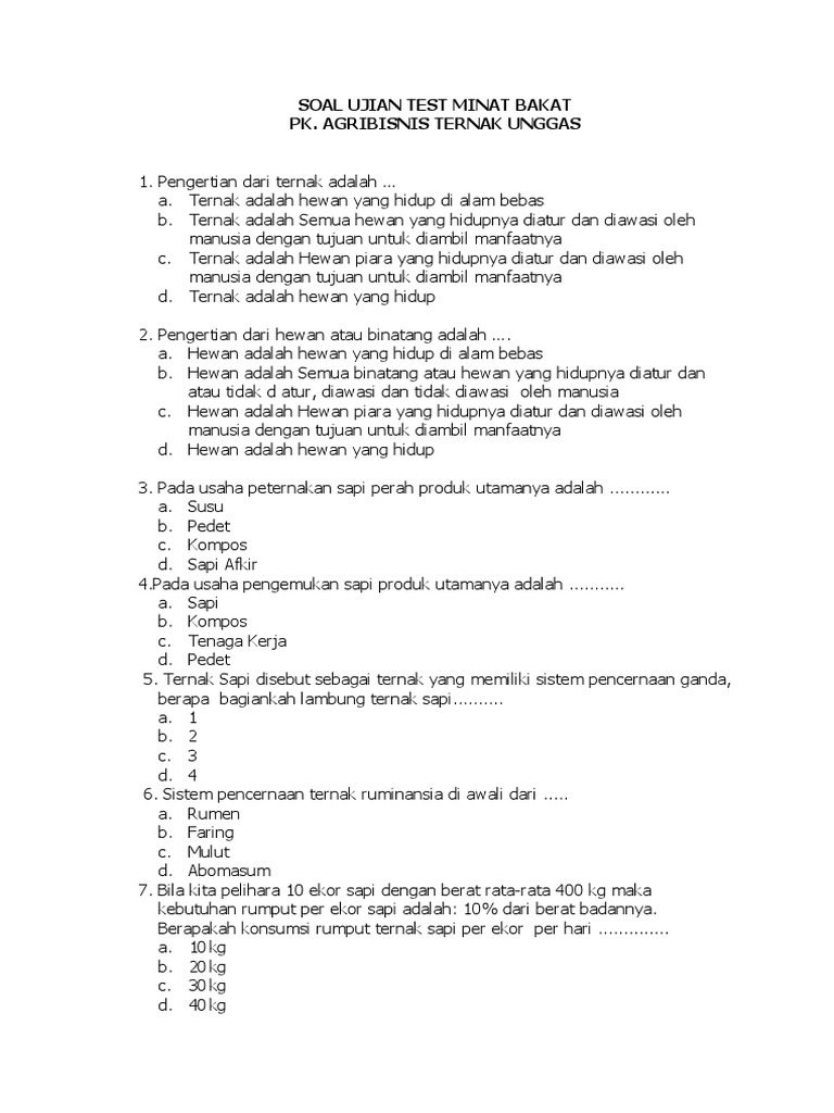 Inspiration Contoh Soal Tkb Peternakan Paling Populer